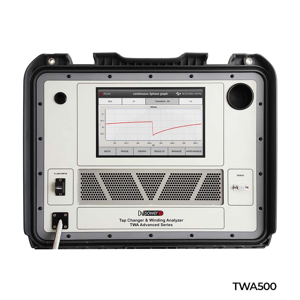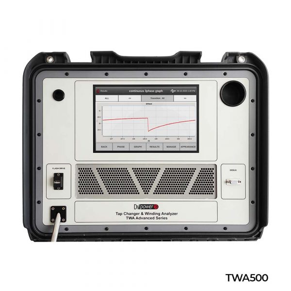 TWA500 配備 10.1 英寸大型圖形觸控顯示器,TWA400 配備 7 英寸圖形觸控顯示器。更友善的使用者介面同時啟用先前僅能透過DV-Win 軟體提供的測試選項,其中包括 DVtest、分接開關電機電流測量、Heat Run 測試、測試模板與自動測試模式。