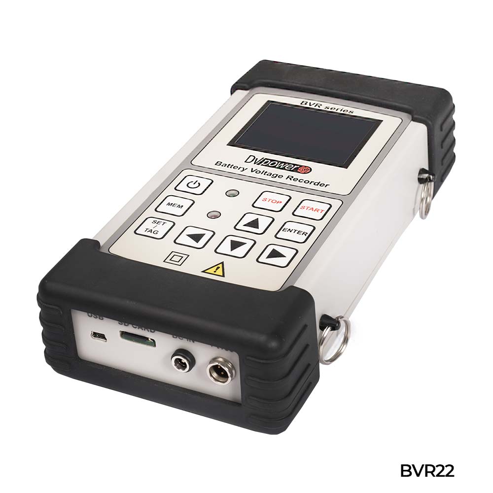 BVR 系列電池電壓記錄儀(BVR11/BVR22),手持記錄電壓與溫度,支援 USB、藍牙及外接比重計。