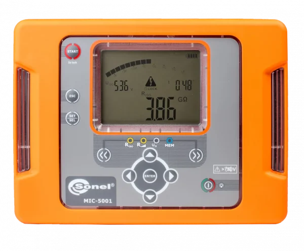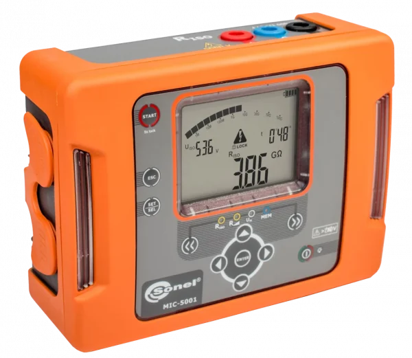 - 測量電壓可在 50 … 500 V 範圍內選擇,以 50 V 步長選擇,在 500 … 5000 V 範圍內,以每 100 V 步長選擇